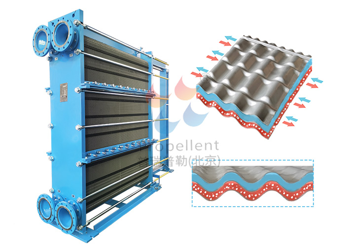寬流道板式換熱器板型采用獨特的粗波紋、寬間隙通道結構設計,板間無觸點,通過性好,介質可以無限制地流過板片的換熱表面而不發(fā)生堵塞、滯留現(xiàn)象,有效防止固體顆粒物、懸浮物、纖維及粘稠物質的沉積、堵塞;