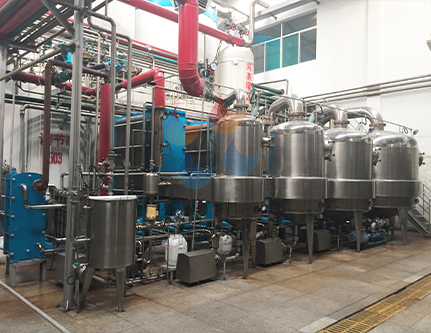 清糖液經(jīng)過多效蒸發(fā)冷凝系統(tǒng),濃縮糖業(yè)濃度
