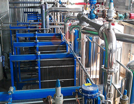 板式冷凝器用于蒸汽和乏汽冷凝,可完全冷凝糖漿汁汽,回收冷凝水。特殊的波紋流動(dòng)形式特別適合于二次蒸汽冷凝,降低汁汽側(cè)的壓力損失。